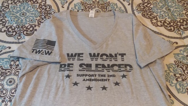 Lastly, my Well Armed Woman “We Won’t Be Silenced” shirt arrived! I love it, and cannot wait to go out and wear it. I am a proud supporter of the right to bear arms, and this current fight just to get our voices heard is so much more than just the organizations being able to use social media. By silencing our message, so many people out there only get one side of the story and do not know how they can empower themselves to take care of their safety.