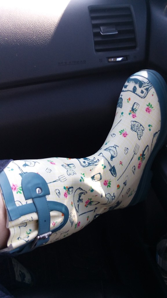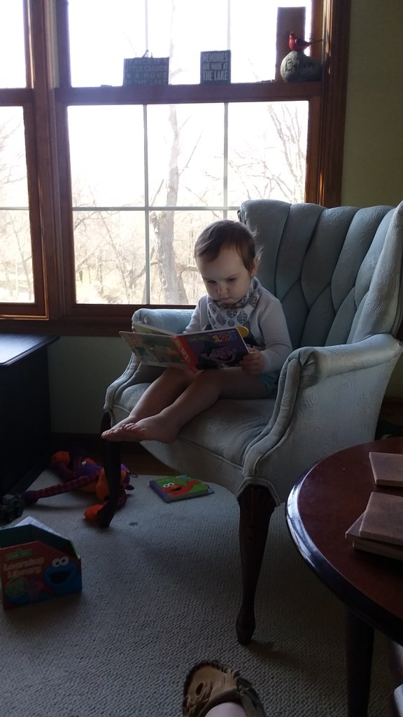 I got some new boots, and Little Man and I both got new overalls yesterday, so we got all dressed up this morning to go out in the yard and help with the work. First, it was reading time; I love how Little Man will inspect all of his books and then decide which one to “read.” We ran to the egg lady this morning with Papa and the dog, and then came back and put together the new bench my parents picked up yesterday. Little Man immediately climbed onto it and jumped up and down; I’ve never seen such a cute Quality Control Analyst!