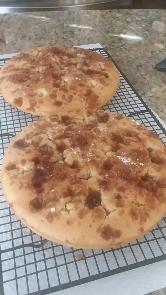 It was a baking kind of week. Tuesday evening, Little Man helped me mix up some delicious brownies from Off Kilter Brownies. OMG, they are sooo good. We have been enjoying them topped with a scoop of vanilla ice cream. Saturday morning, Little Man helped me make some Jiffy Blueberry muffins. He got to pour the mix into the bowl, put the muffin liners in the tin, and mix as best he could. He even proceeded to eat 9 of the 12 muffins we made! Silly kiddo. Sunday morning, we made Amish Cinnamon Flop Cake, from Amy at A Farmish Kind of Life. It smelled so good while it was baking, and is so light when you eat it; absolutely delicious. I’ve got some plans to play around with it, doing different toppings, like apples, cherries, nuts, etc.