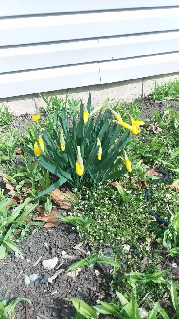 One of my mother’s daffodil plants has bloomed. I was inspired, and did take some wildflower mixed seeds, which I spread in the back corner of the yard here. I don’t know if they will grow, as I just lightly raked the soil and then tossed the seeds out before watering the area. Maybe we will get something, maybe not. Either way, it’s an experiment.