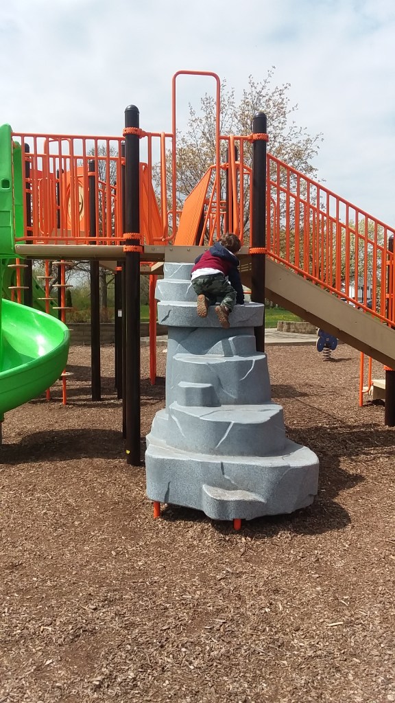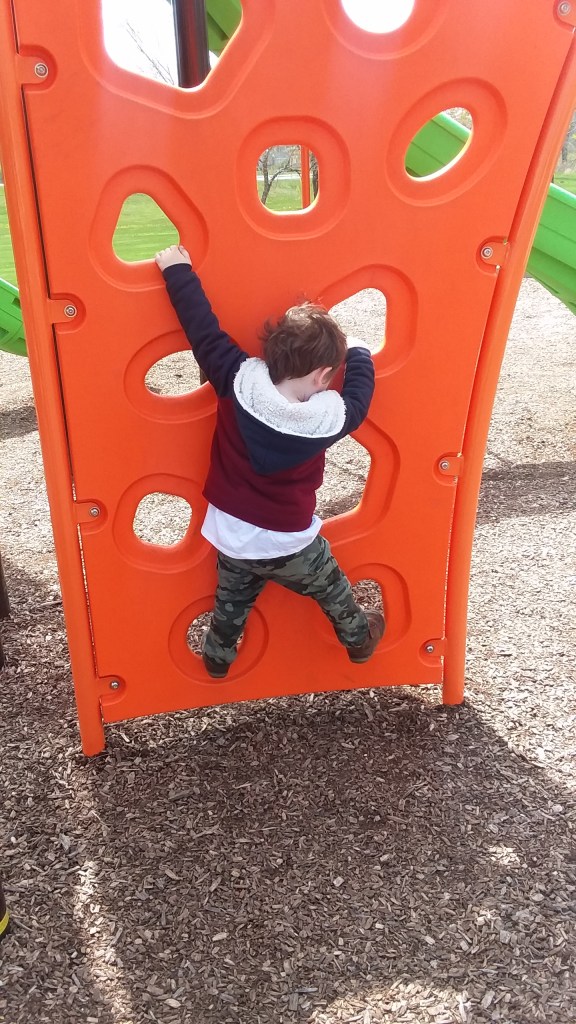 OK…enough about Arrr. Little Man and I had so much fun this past week. We got a lot of cuddling in, and went to several parks. We found one nearby; it’s newer, so I’ve never been there before. I really enjoyed it, as did Little Man. There was so much to climb up on; that’s all he did for the half hour we were there! He was just “so climby today!” as he kept telling me.