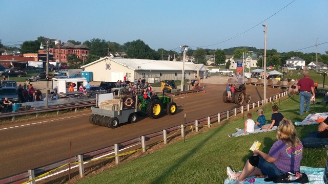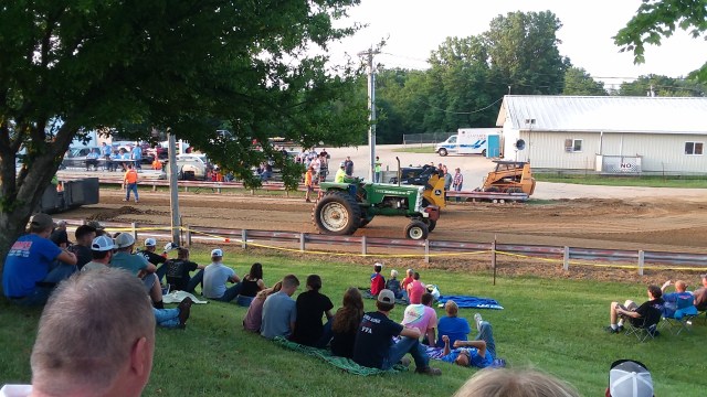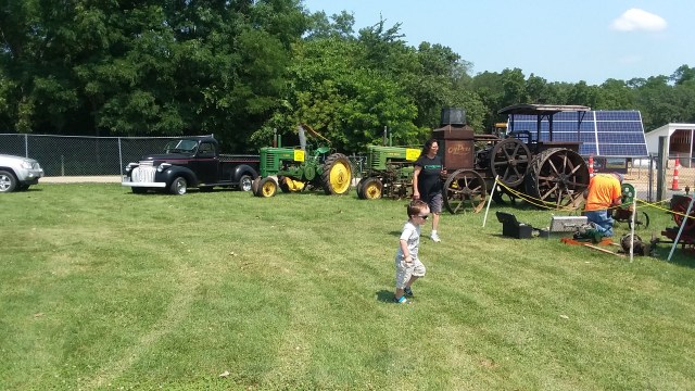 The fair also had an antique tractor area. The highlight of the weekend, though, were the truck and tractor pulls Friday night and Sunday morning. Some of those truck were LOUD! I brought earmuffs Sunday, so they were a big help for Little Man to be able to watch the trucks without me having to cover his ears.