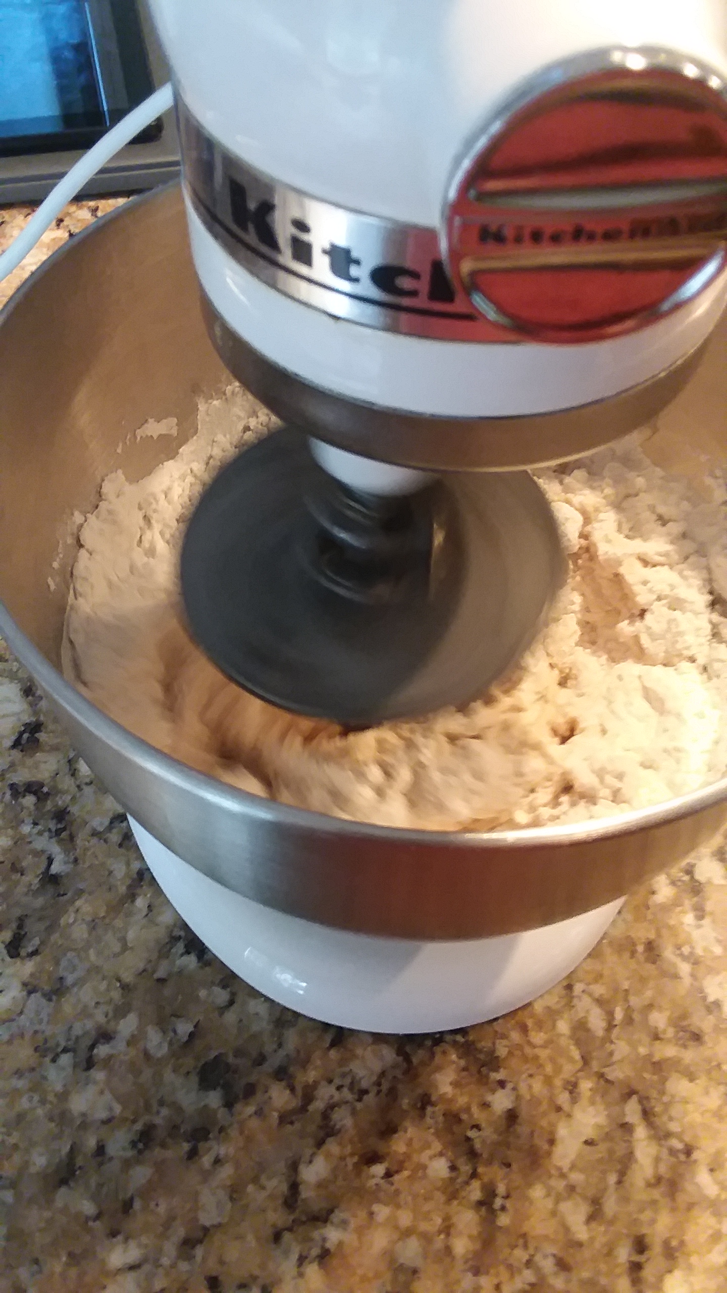- Remove dough once it forms a firm, pliable dough ball (you may need to add more flour to achieve this)