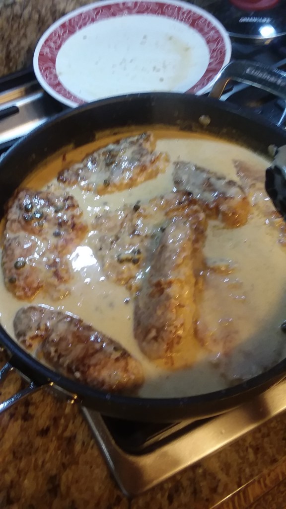 We did double the recipe, making 8 servings instead of the 4 this usually makes. We ended up using the cornstarch mixture to thicken the sauce. The few tweaks I’ve got for doubling this: Stick with the 2 Tablespoons of capers (this is what we did), or else it will be way too many; Add the lemon juice 1/2 lemon at a time and taste (some people don’t like it too lemony; we used 1 whole large lemon’s juice); You may want to pound out your chicken breasts if they are still pretty thick so they cook faster and more evenly; Cooking more chicken will result in more time to make this recipe, we ended up in the kitchen for almost an hour and a half to get everything done.