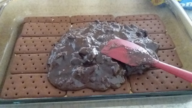 - Spread Cool Whip on top of the chocolate