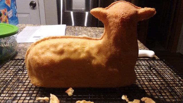 The Easter Lamb Cake is one of my favourite cakes to bake. I started making it as a child in Gramma’s kitchen, and now it’s my job each year to be sure we have the cake on Easter Sunday. There is no real recipe here for you to follow, but just more of my tips and tricks to get a successful cake. However, I do want to share this article from My Fearless Kitchen, which I have found to be a big help when you want to make a lamb cake; they even have a recipe to make the cake from scratch.
