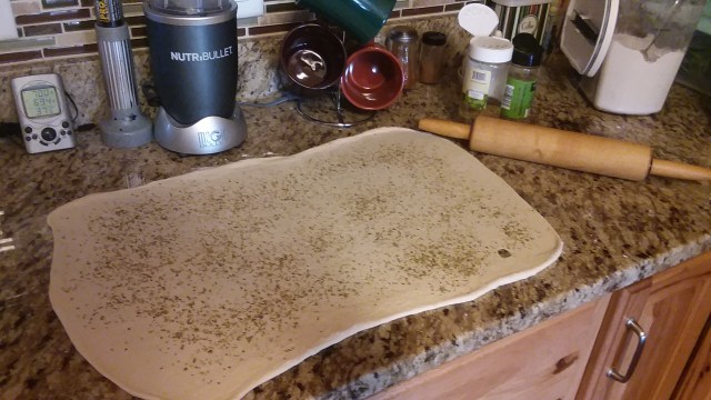 - Lightly sprinkle your Italian Seasoning and Oregano onto the dough.