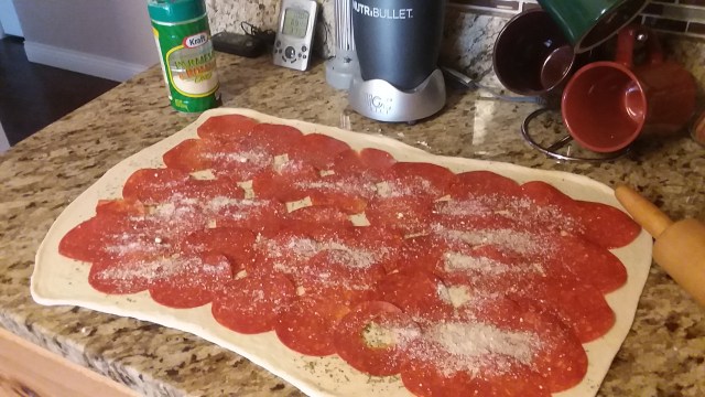 When you’re at the deli, be sure to ask for the pepperoni and provolone to be shaved. If it is any thicker (especially the pepperoni), it will be extremely difficult to roll up.