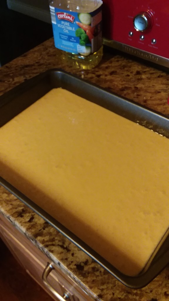 - After taking the cake out of the oven to cool, use a straw or fork and poke holes all over the cake